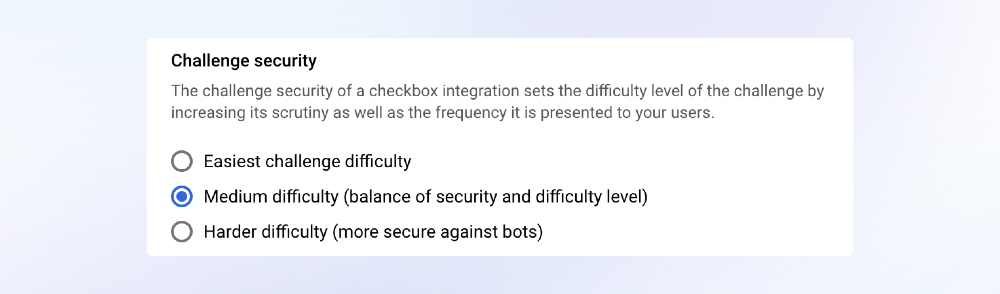 Отметьте чекбокс «Use checkbox challenge», в меню выбора сложности выберите пункт «Medium difficulty».
