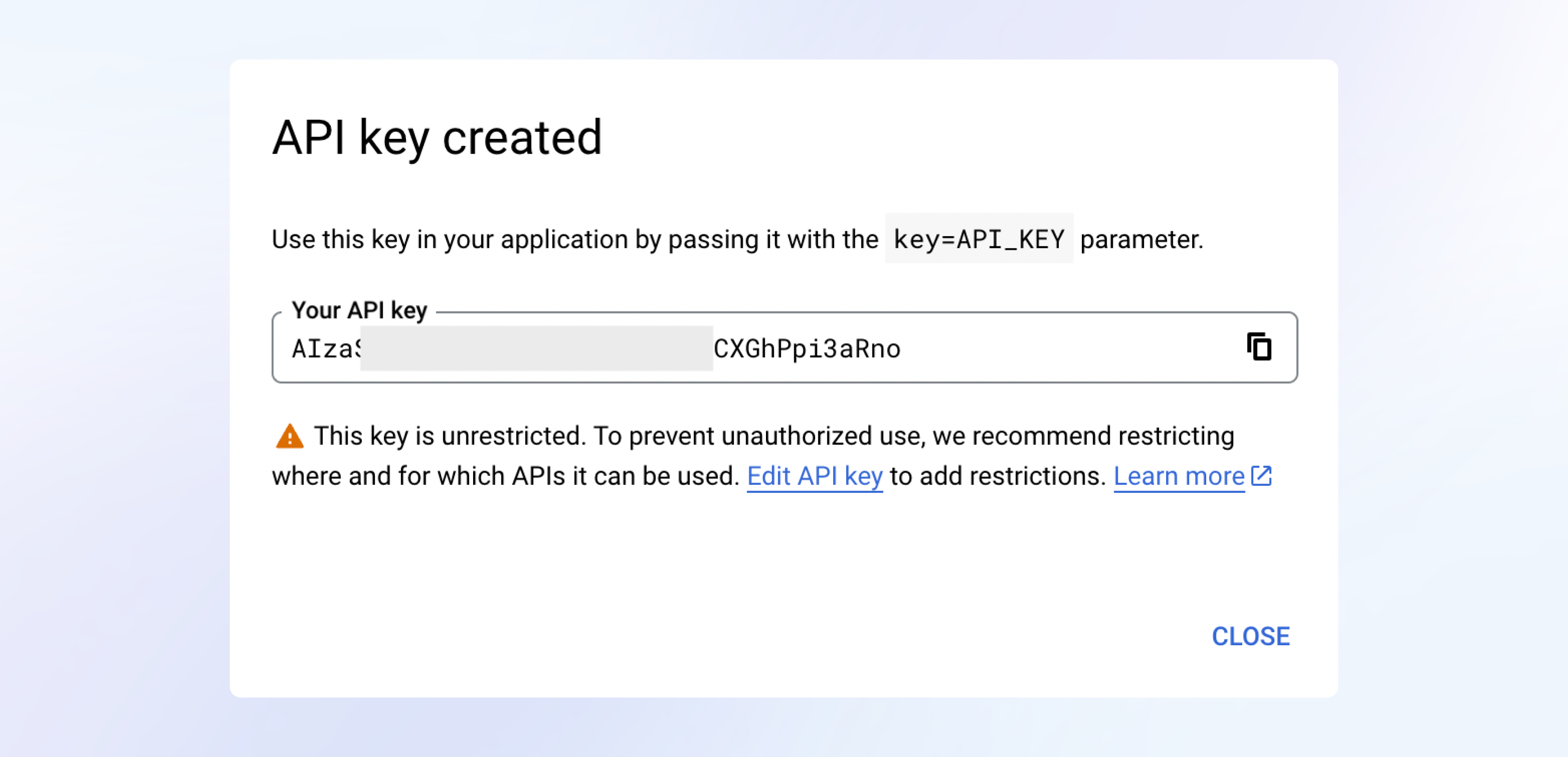 Нажмите кнопку «Create Key», чтобы завершить создание ключа.