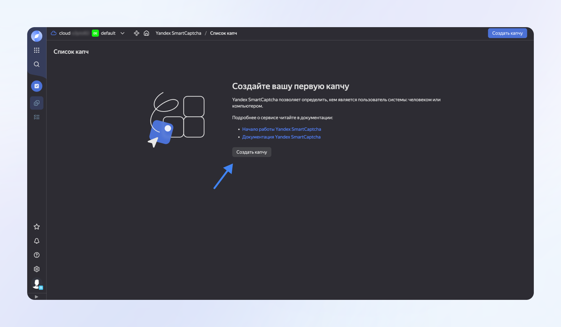 Для настройки Yandex SmartCaptcha потребуется учетная запись Yandex. После авторизации в учетную запись необходимо перейти в панель управления Yandex и выполнить четыре шага: