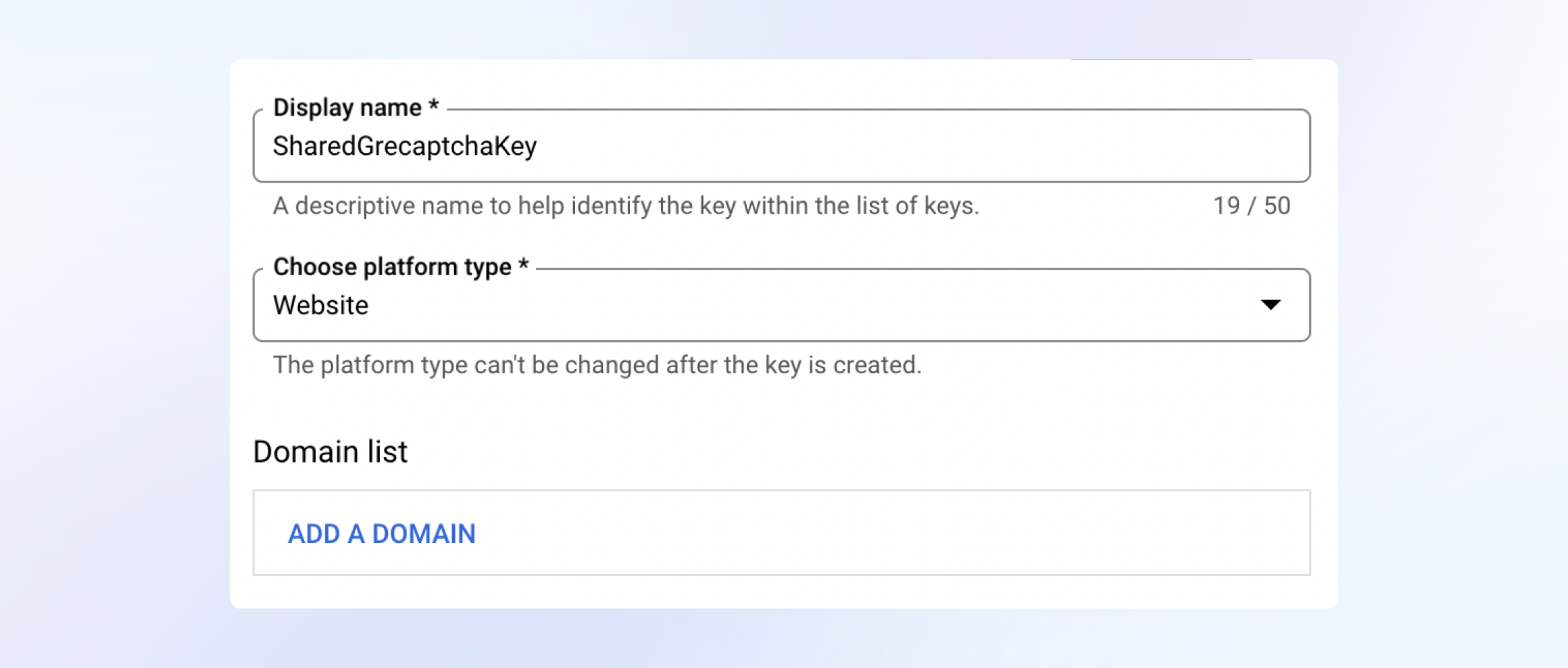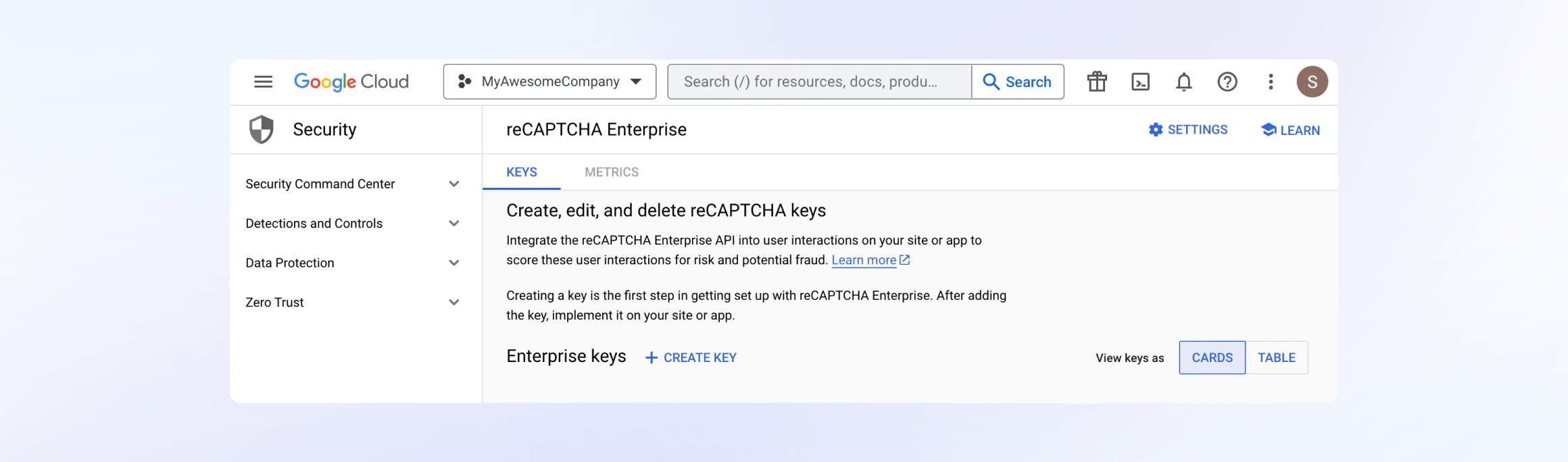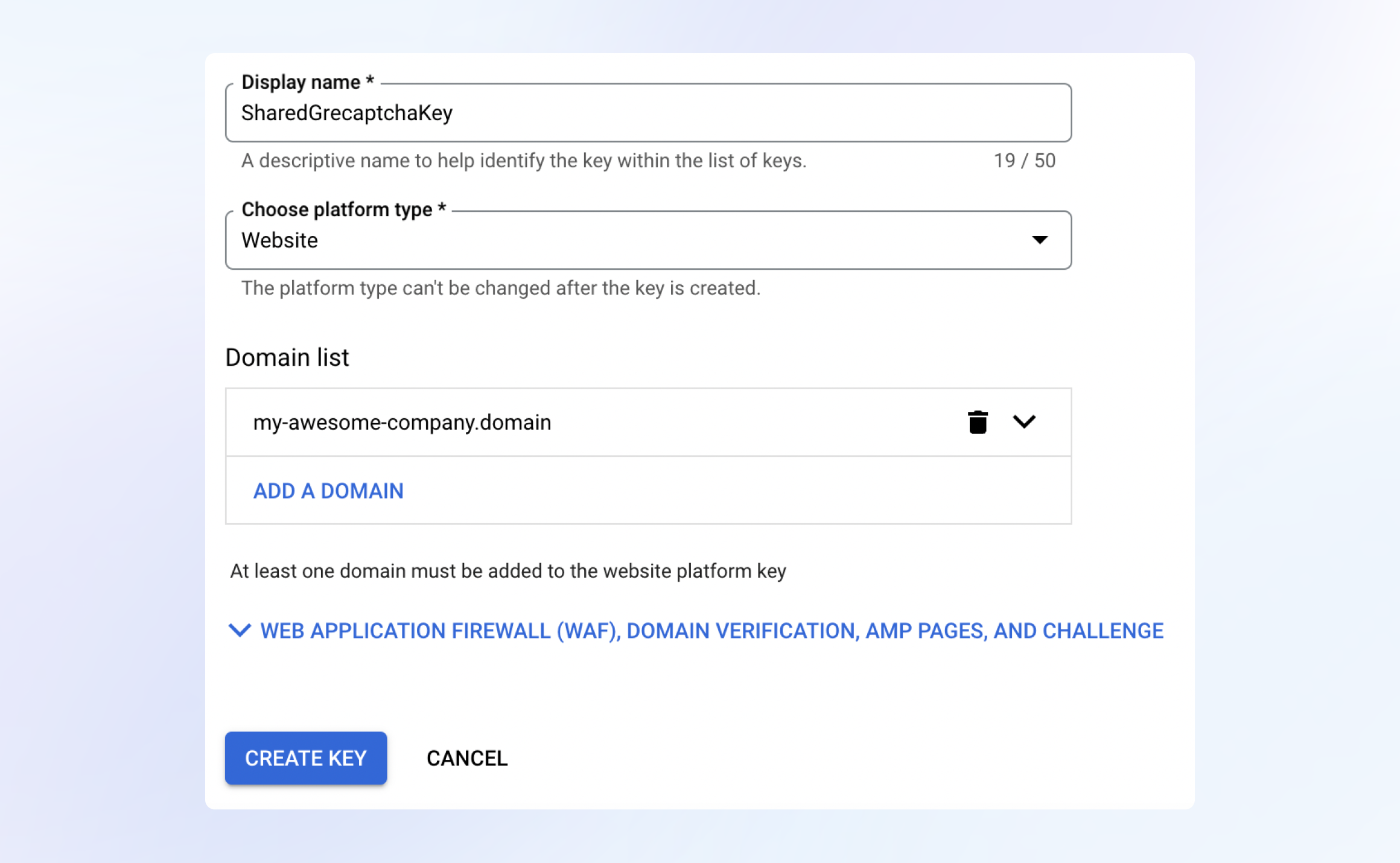 Перейдите на панель Google Recaptcha и нажмите кнопку «Create Key».