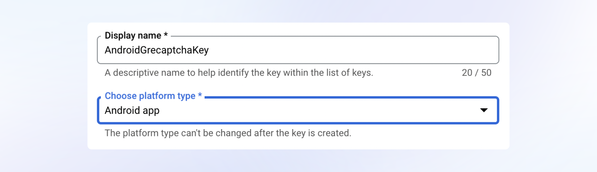 в поле «Choose Platform Type» выберите пункт «Android App».