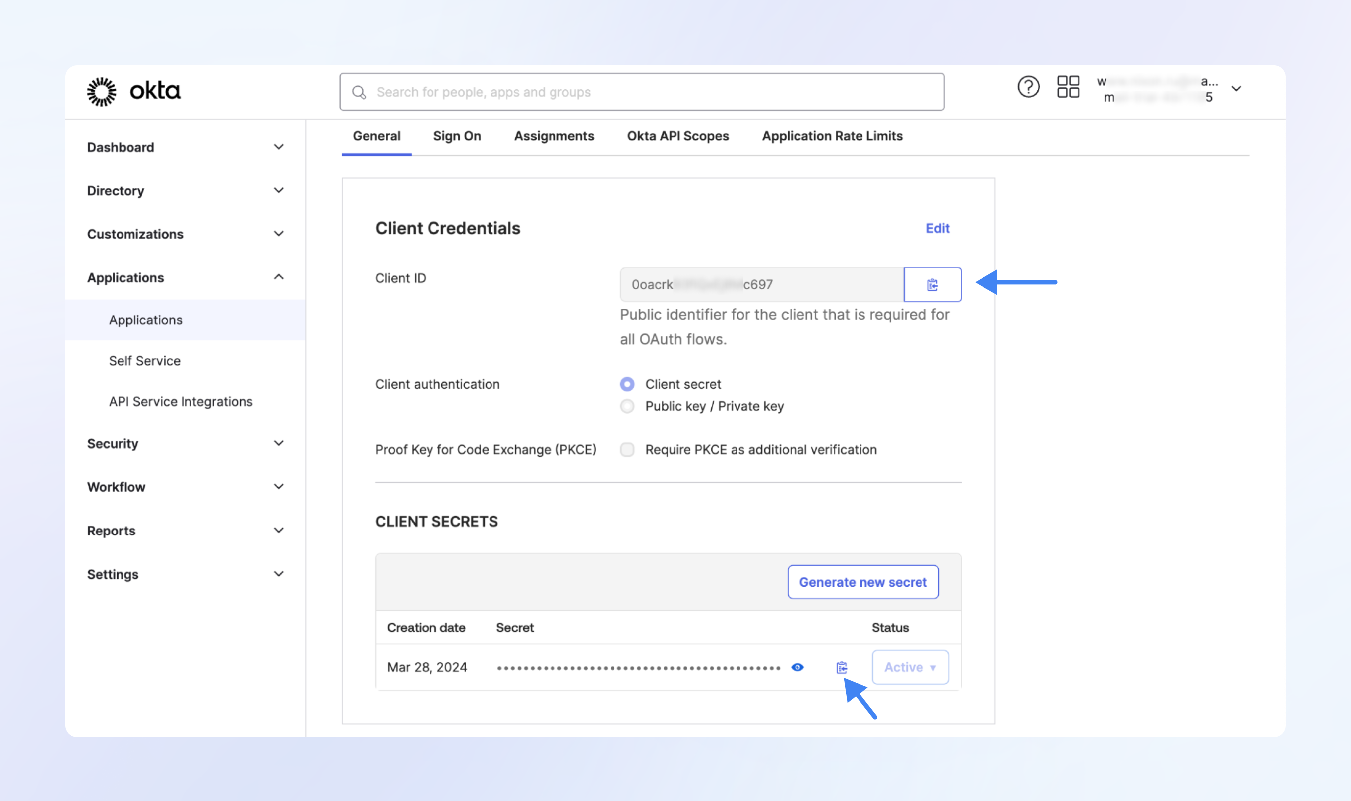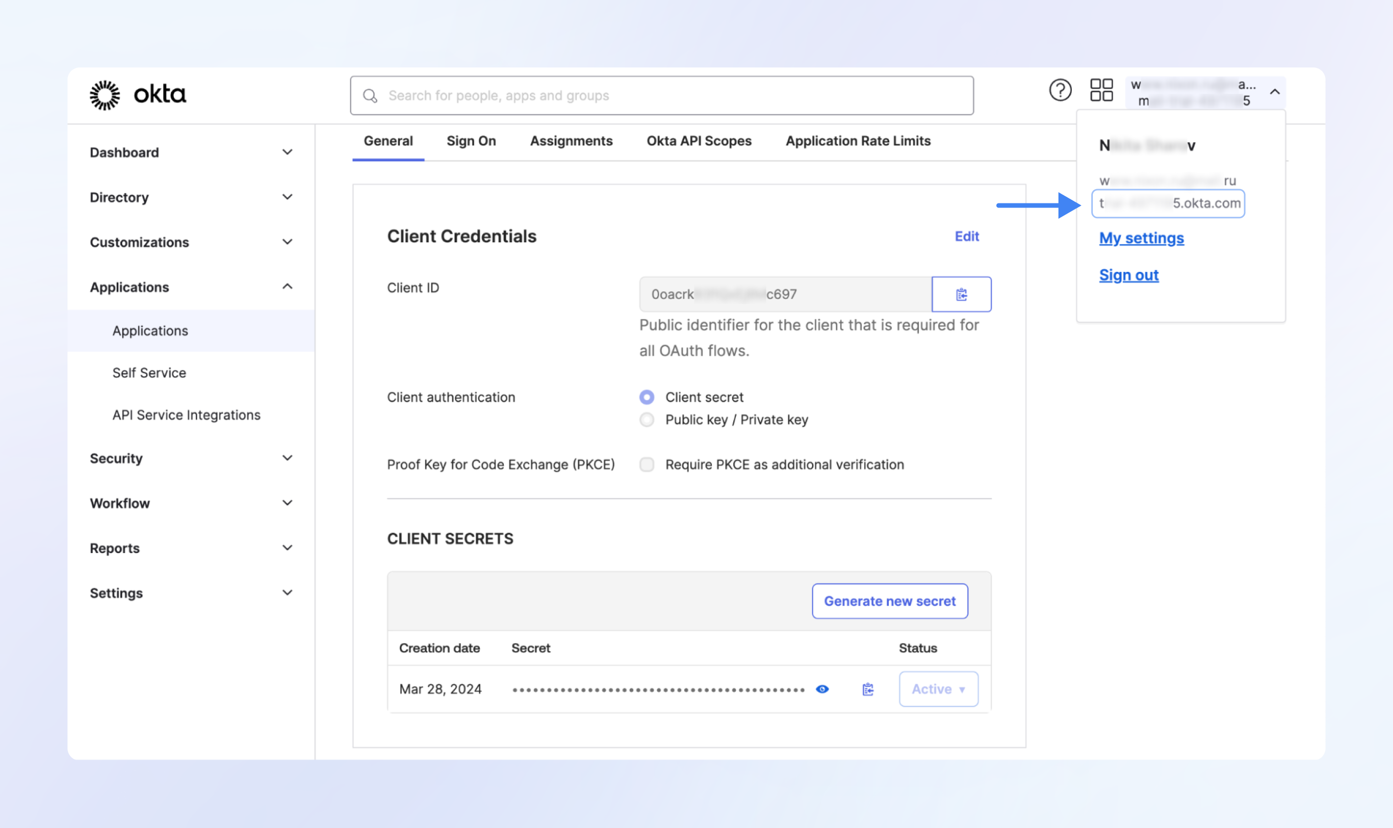 ID и секретный ключ клиентского приложения, зарегистрированные в SSO-провайдере;