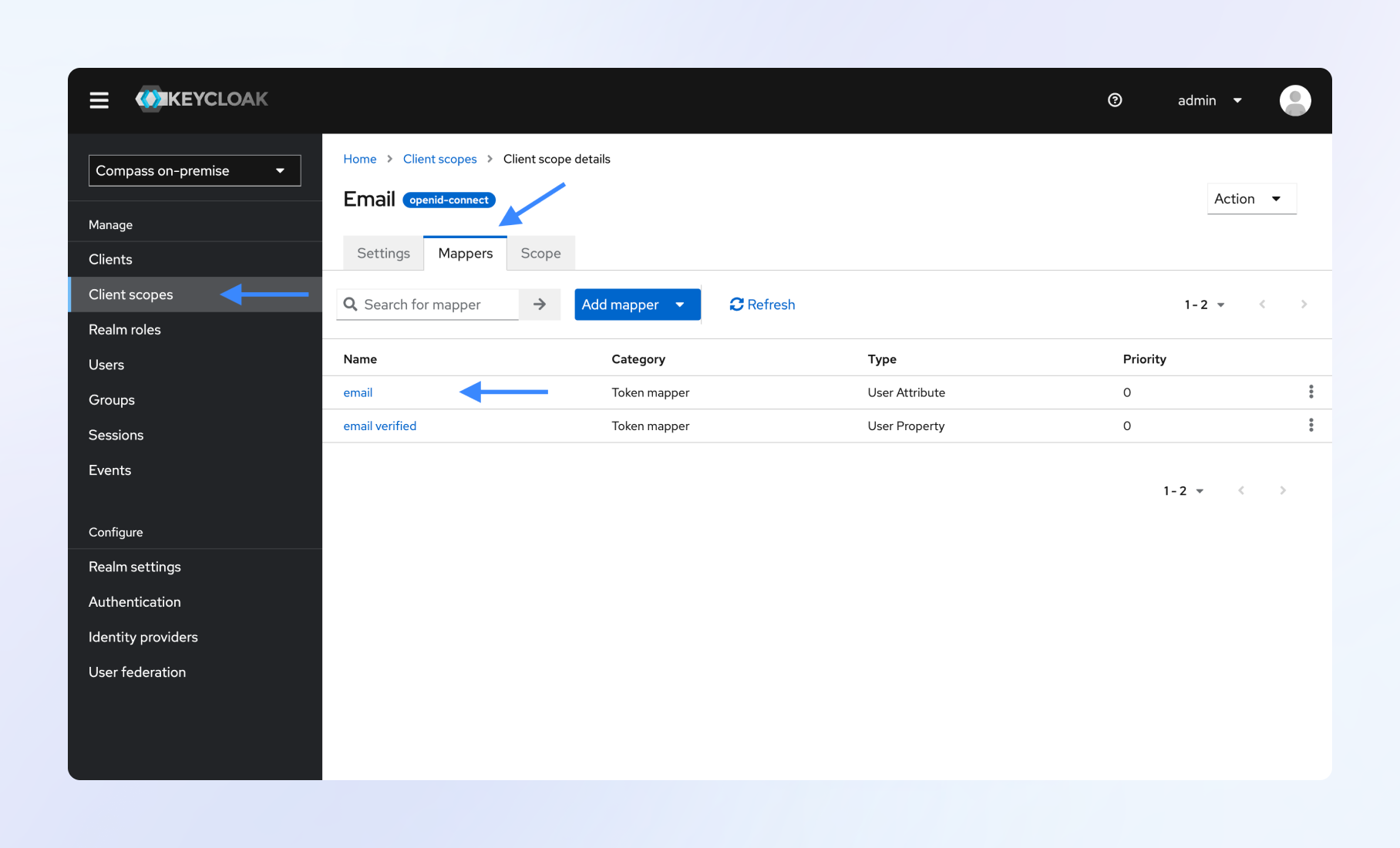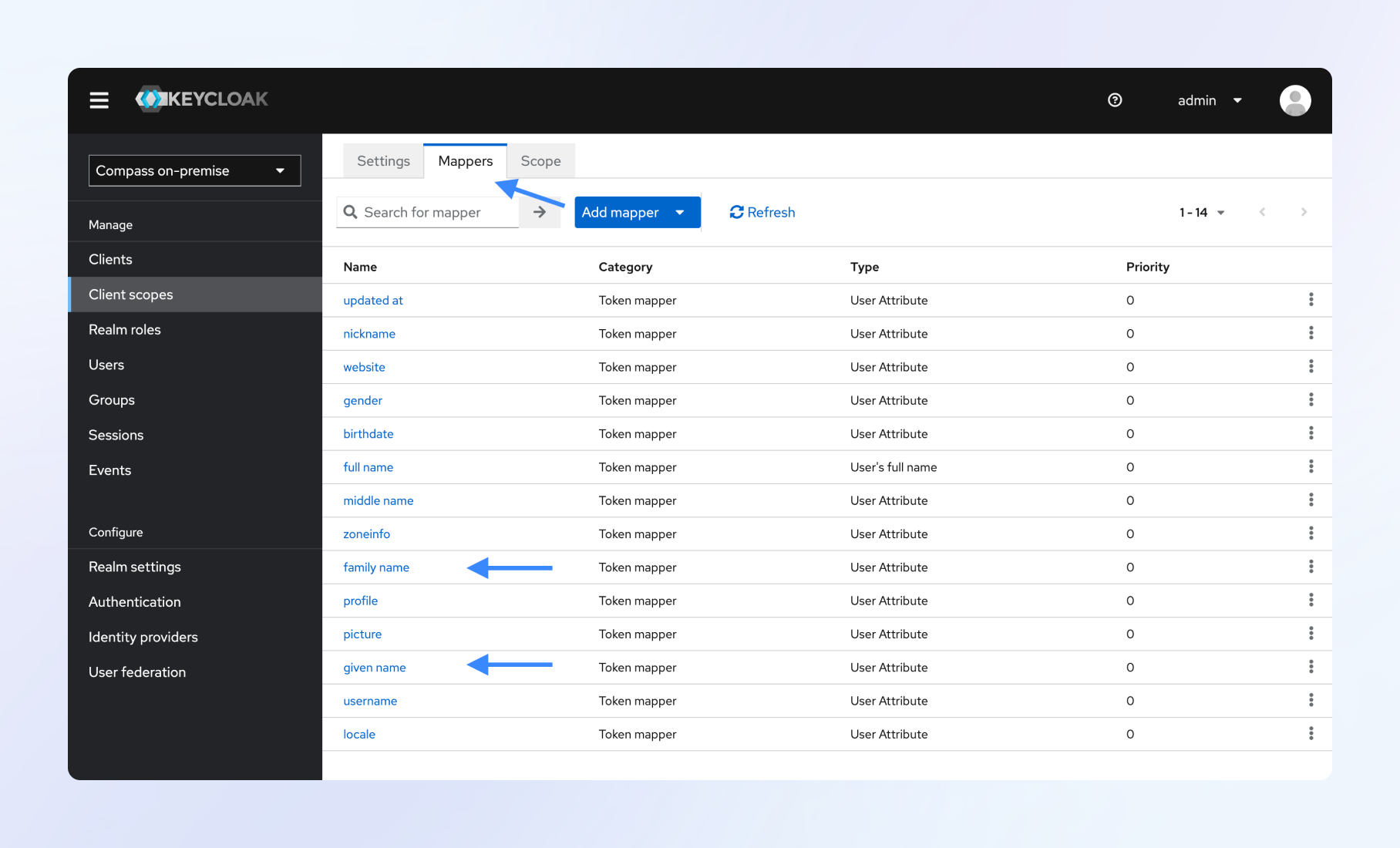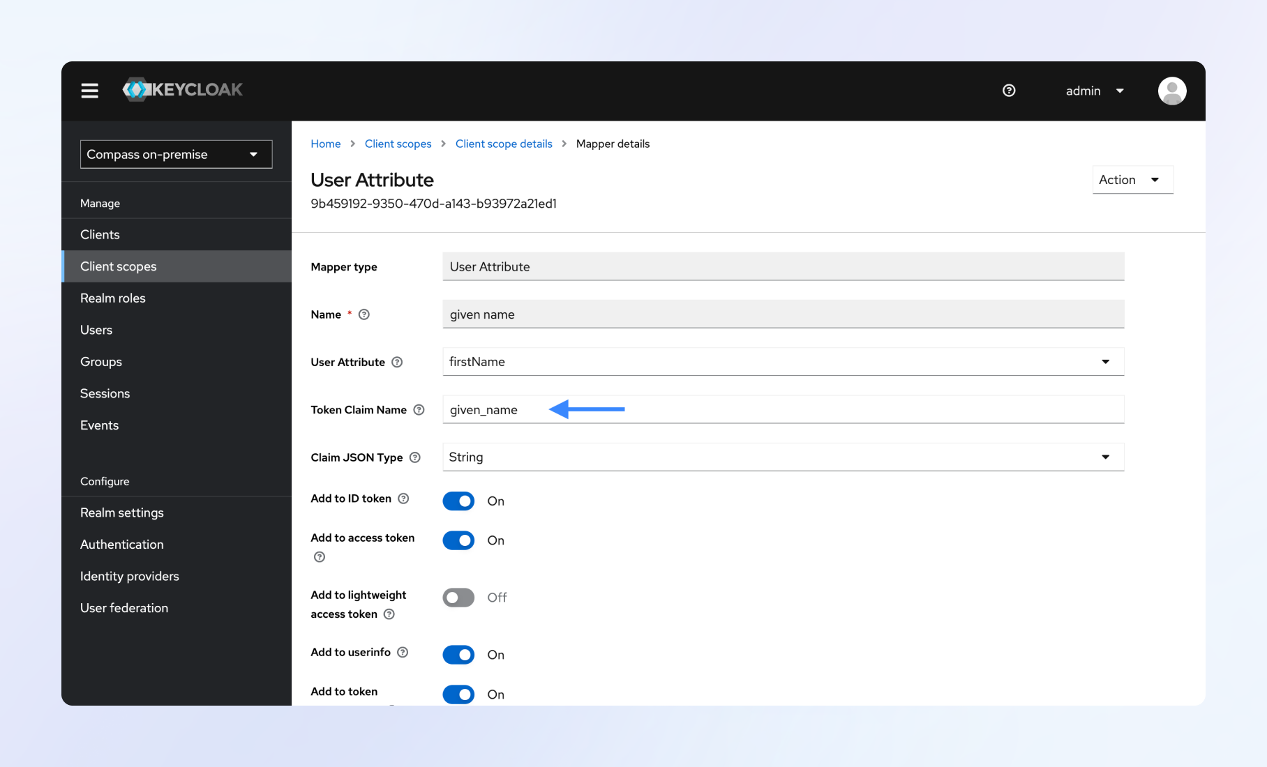 sso.compass_mapping.name: "{displayName}"Остальные поля могут быть пустыми, если заполнение атрибута в Compass не требуется. Если требуется, то название атрибута можно взять из таблицы атрибутов AD (шаг 1, пункт 3).