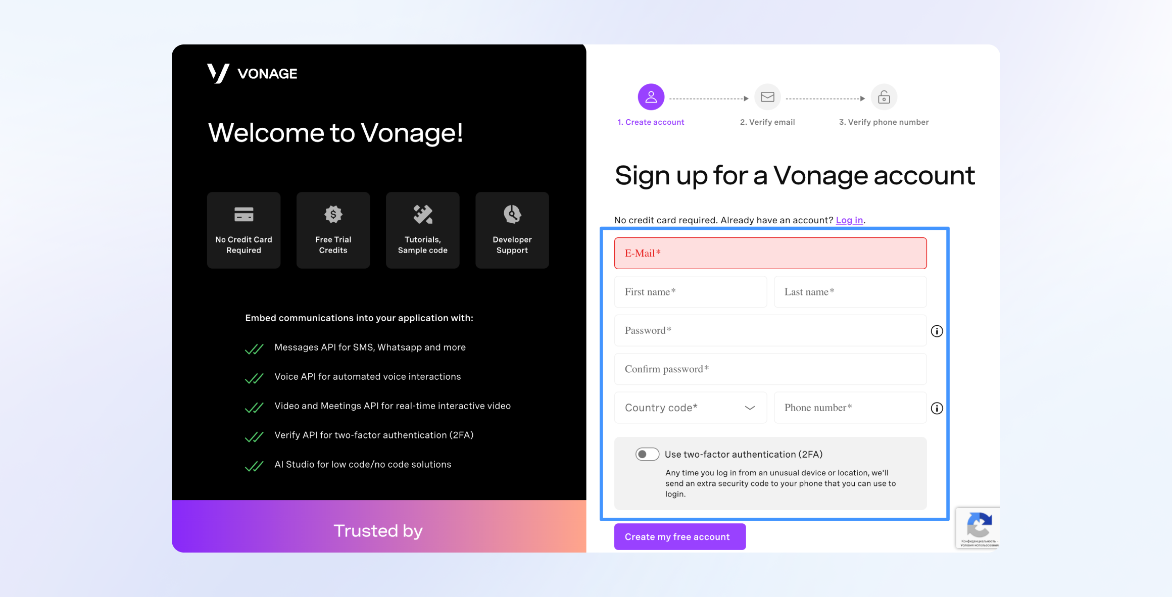 Заполните все необходимые поля, затем подтвердите создание аккаунта.