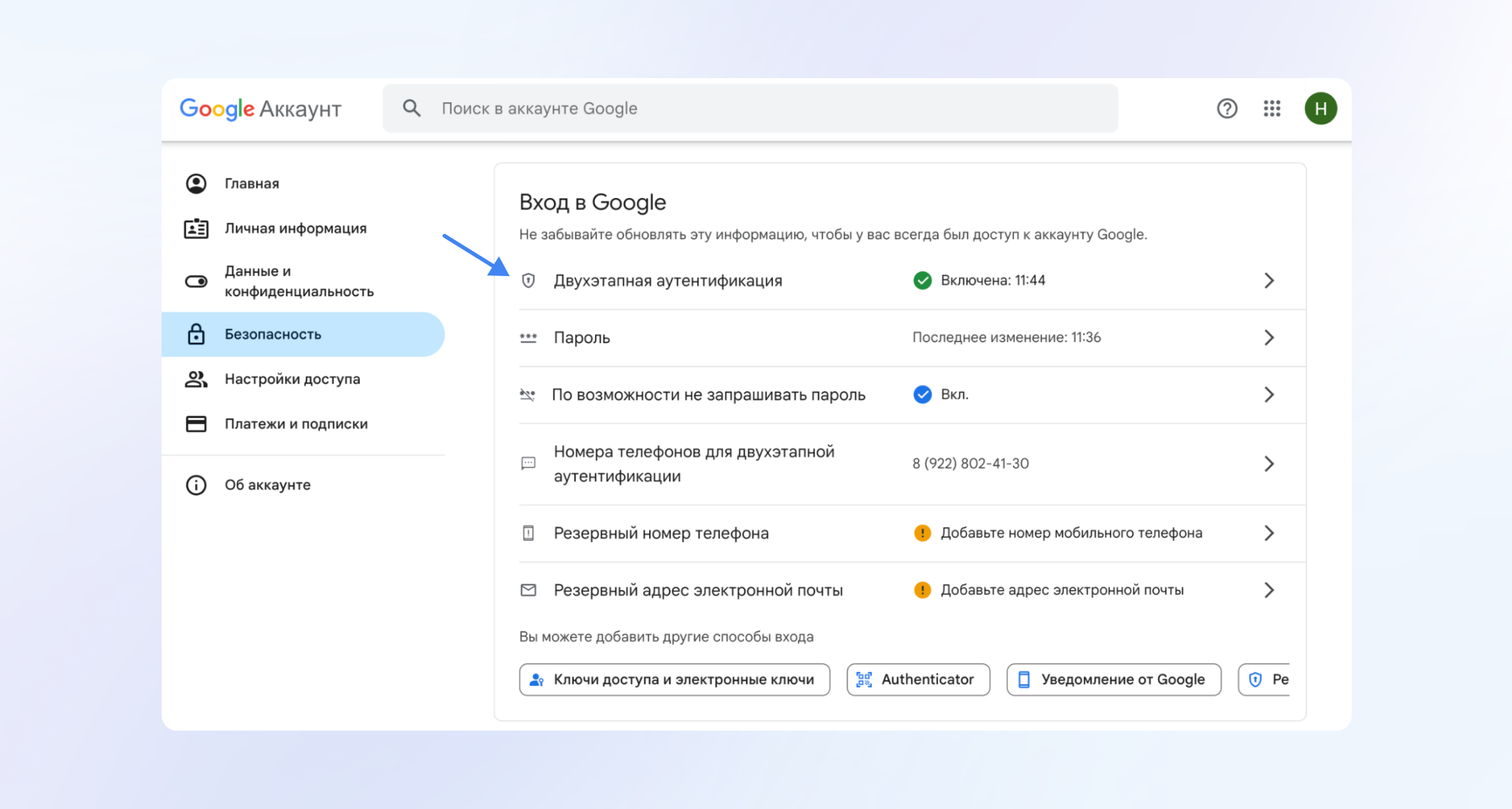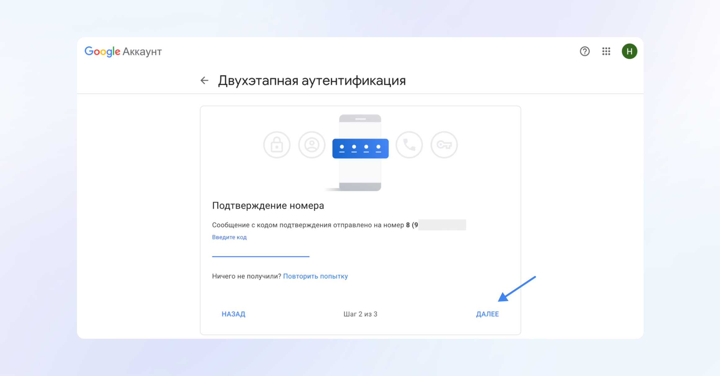 Предоставьте ответы на вопросы для настройки аккаунта после подтверждения личного номера.