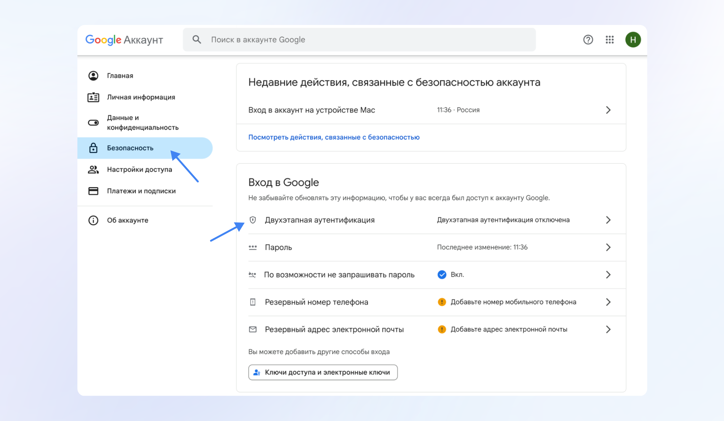 После входа в аккаунт ответьте на вопросы для настройки аккаунта.