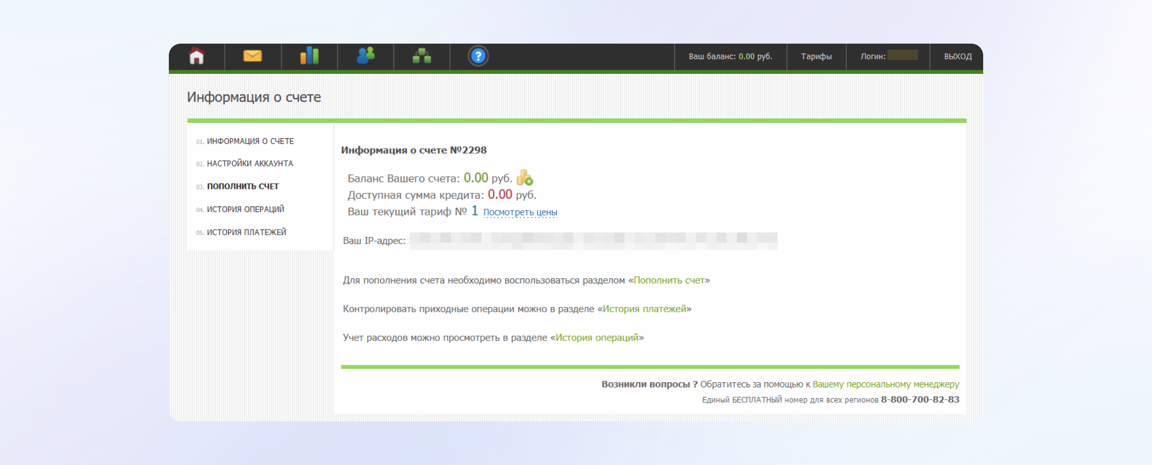 В разделе «Справка» также можно найти контактные данные вашего персонального менеджера, чтобы связаться с ним по дальнейшим шагам подключения.