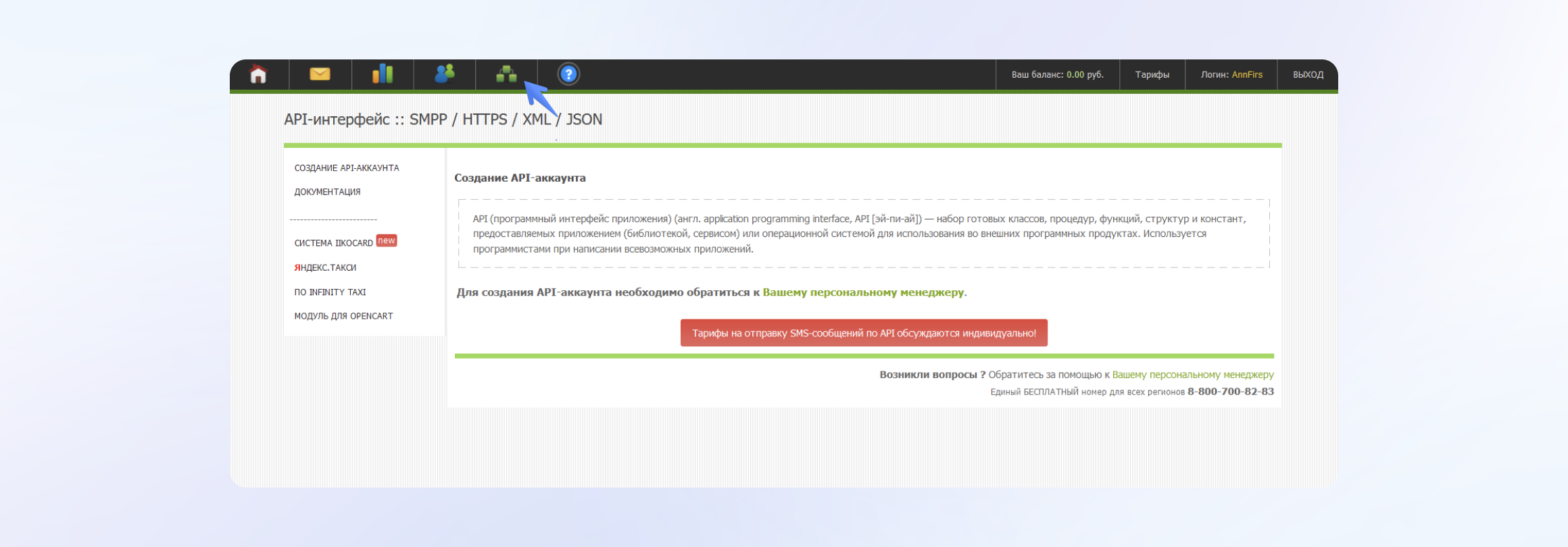 Если персональный менеджер вам не позвонит, для создания API-аккаунта необходимо перейти в раздел «API-интерфейс». В нем вы найдете ссылку на контактные данные персонального менеджера.
