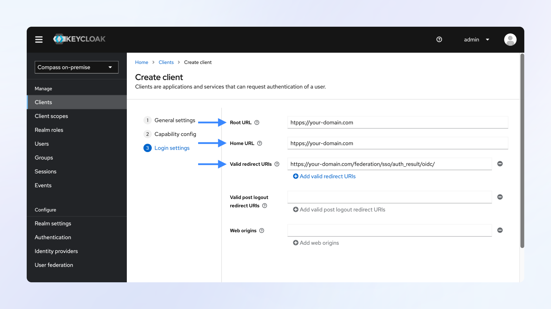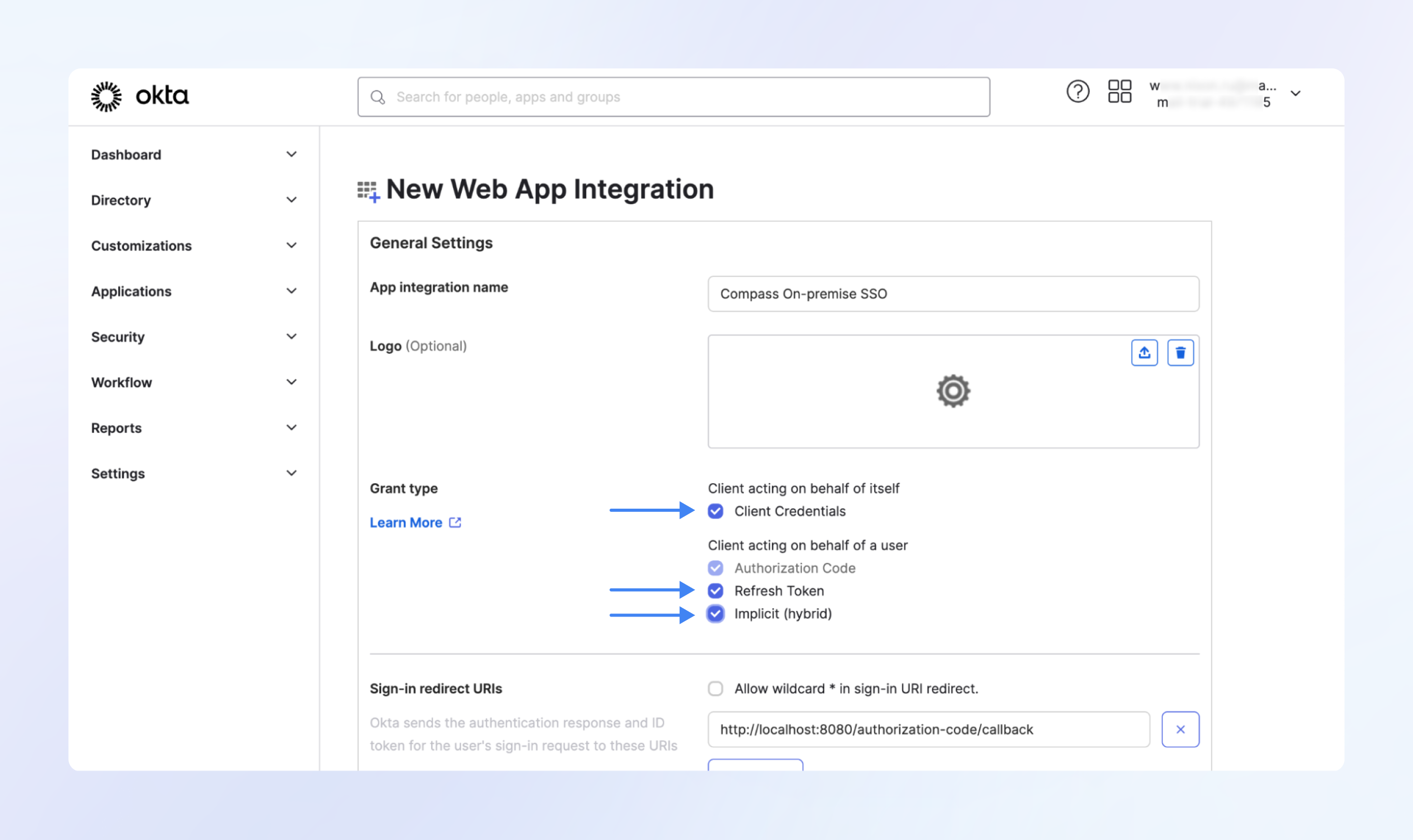 Если вы планируете использовать авторизацию через Single Sign-On, необходимо настроить интеграцию SSO-провайдера с Compass On-premise по протоколу OpenID Connect или LDAP.