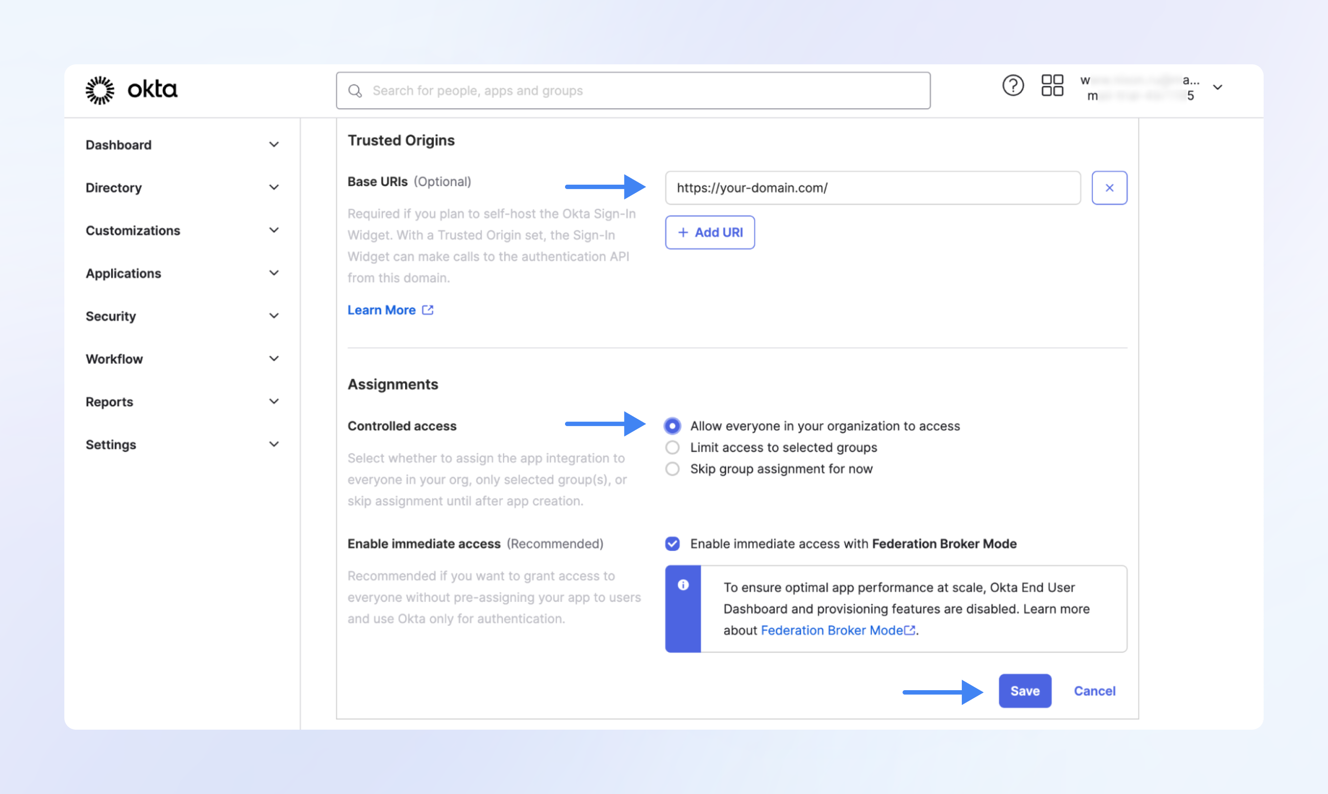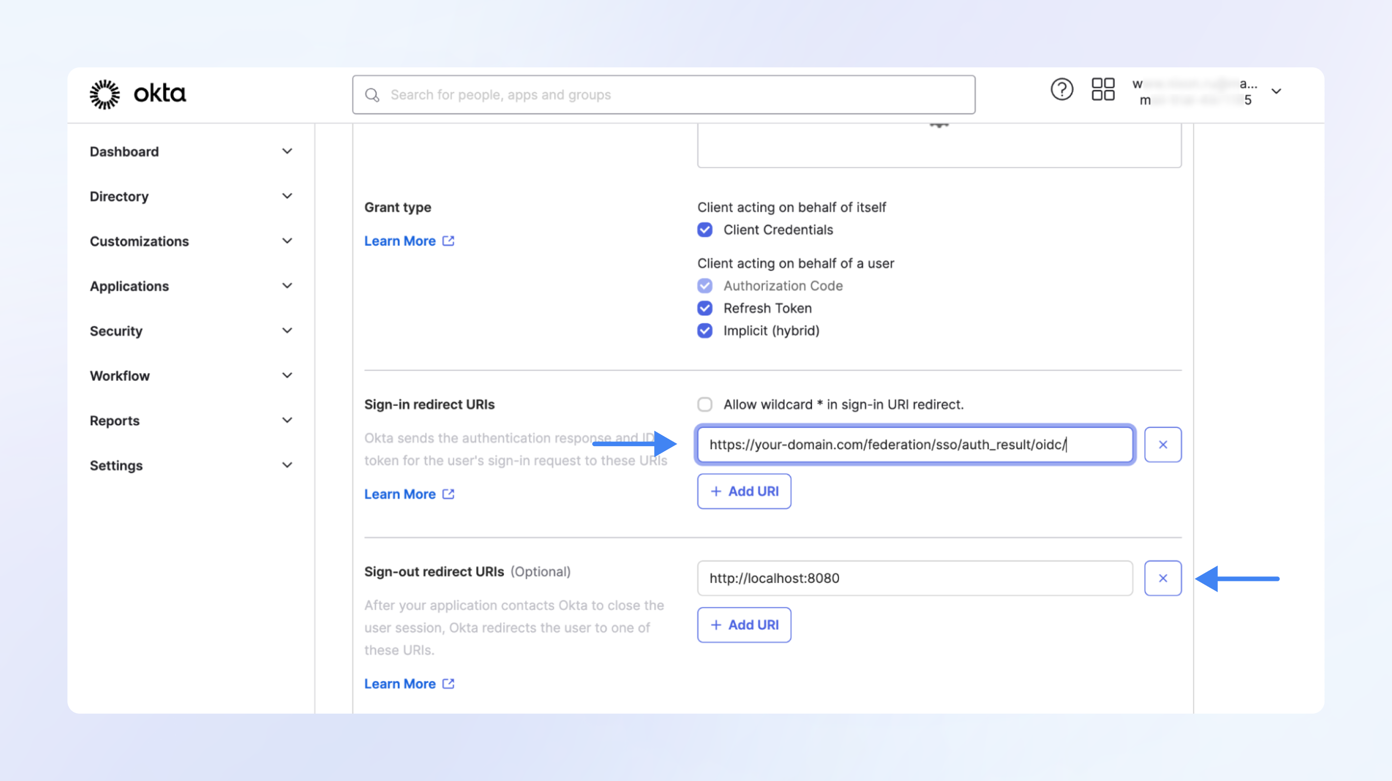 Добавьте поддержку SSO к доступным методам аутентификации учетных записей.