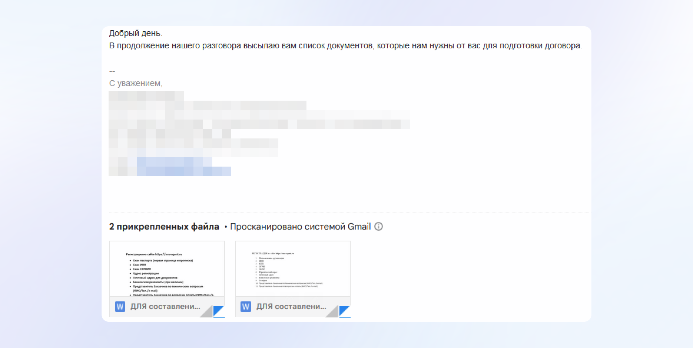 Далее вы будете взаимодействовать с персональным менеджером через почту, указанную вами при регистрации. На почту вам направят список документов, необходимых для подключения.